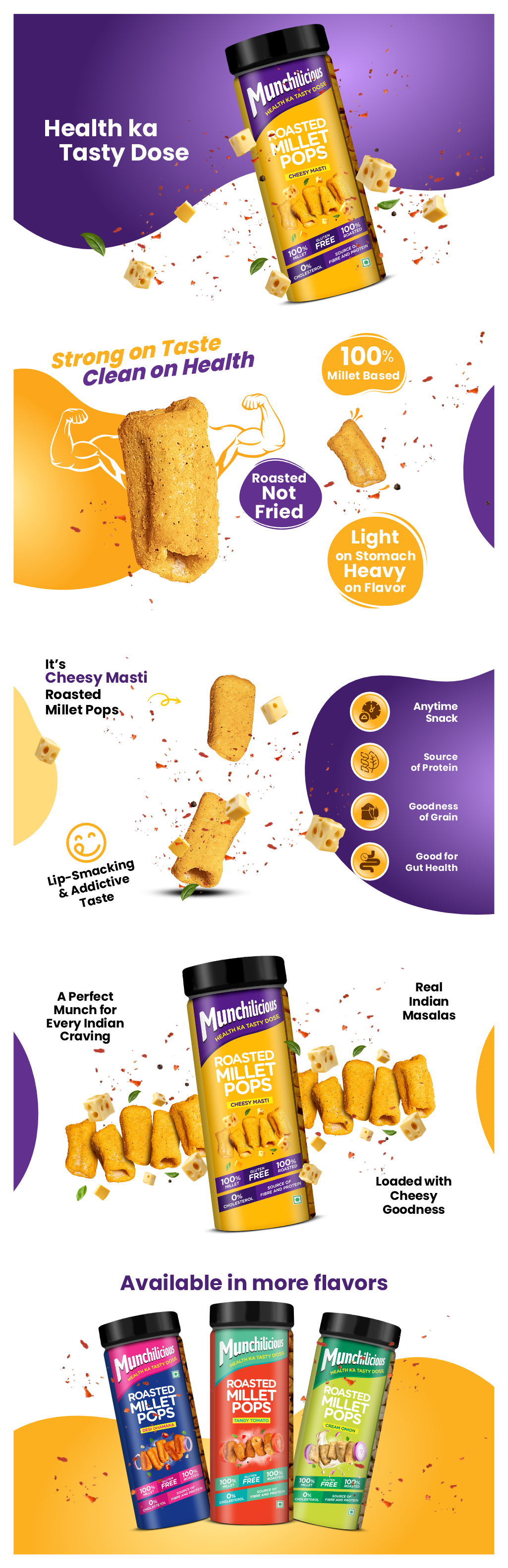 Indulge in cheesy, flavourful millet puffs that deliver crunch and taste in every bite. A fun, light snack for kids and adults alike, minus the fried guilt.