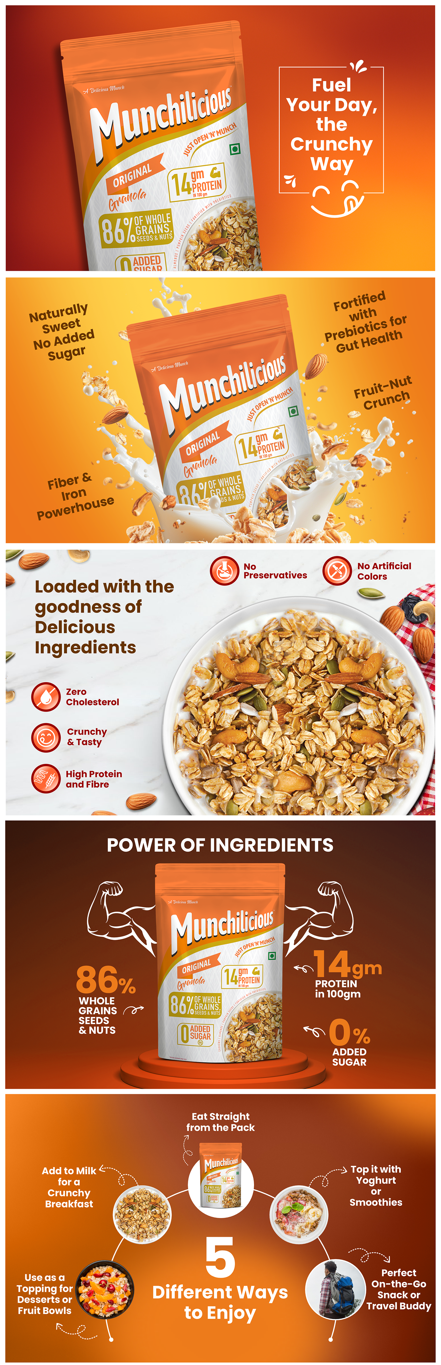 Wholesome and crunchy granola made with 65% rolled oats, nuts, seeds, and a hint of rosemary extract. A healthy breakfast or snack option packed with protein and fiber.